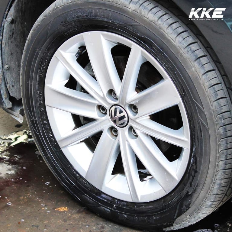 - Spray KKE Brake Dust Remover. Spray from all four sides, Top, Bottom, Left and Right. The Spokes of the alloy wheels cause shadowing.