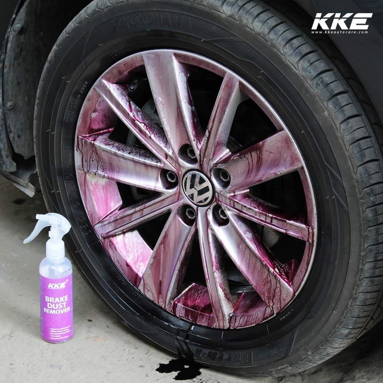 KKE Brake Dust Remover is an excellent product which turns purple when it detects Iron on the surface. The product is pH balanced and is safe to use on