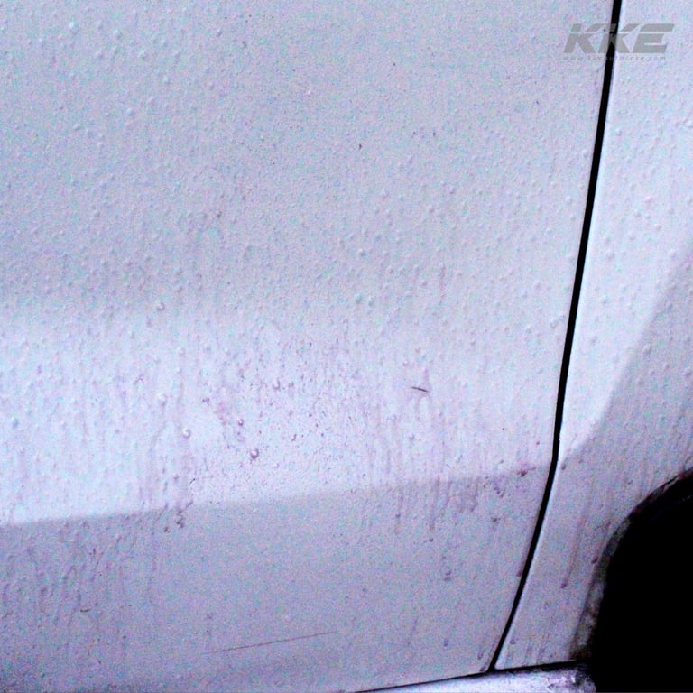 When you are driving on the road, the brake dust of the other cars is also suspended in the air as dust if the particles are small. If you are moving at 90 km/hr, and the air is stationary, these particles which are in the air hit your car at the speed of 90 km/hr. At this speed, these small particles puncture the paint surface and remain there. Later, these particles form more rust and affect the paint finish of your car.